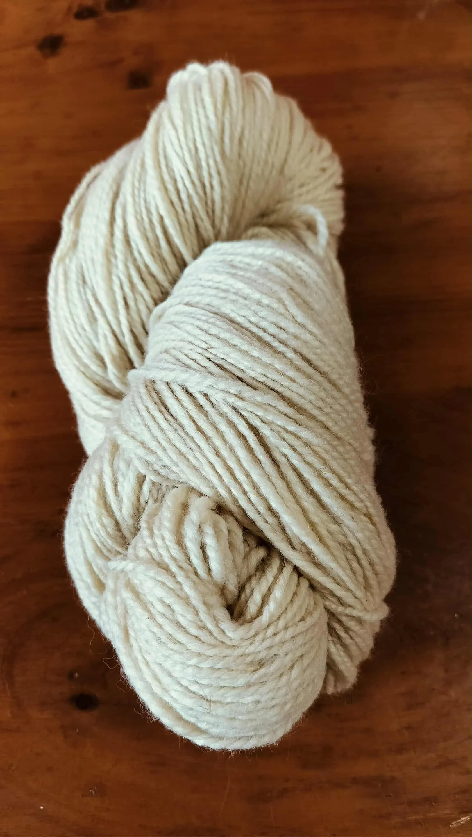 Two ply DK weight yarn โ also known as Battenkill Fibers Adirondack DK. 60% US-sourced Merino and 40% Romney wool from local farms. This soft and lofty yarn would make a beautiful sweater in any one of several natural colors. The lighter colors also dye up beautifully. Skein size and yardage vary, but most are 100g with about 240 yds/skein.